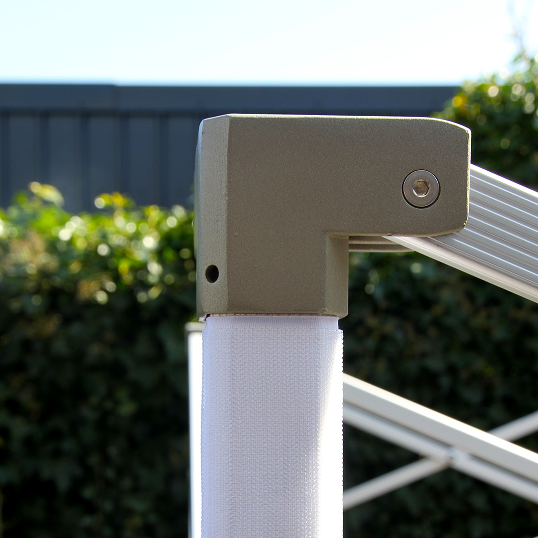 Extra Velcro strips at each corner of the frame ensure a neat, perfectly stretched roof cover. This design guarantees a tight and professional look, even after repeated assembly.