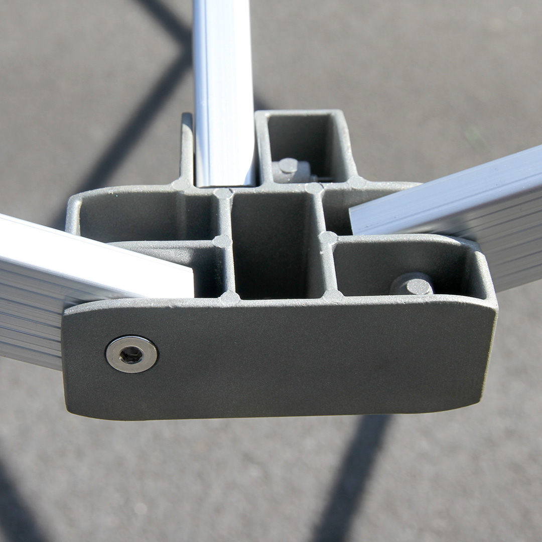 The corners are crafted from high-quality ADC12 aluminum and feature a rounded design, preventing any damage to the cover during use or folding. This ensures both durability and protection, even with frequent setup and transport.